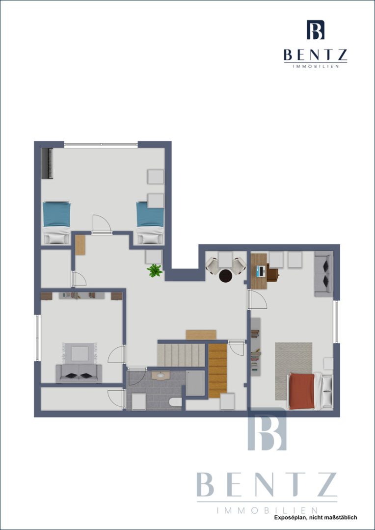 Großzügiges Platzangebot auch im Dachgeschoss: Badezimmer mit Dusche sowie drei weitere Zimmer, welche als Schlafzimmer und Kinderzimmer genutzt werden können. Der Spitzboden bietet weiteren Stauraum.