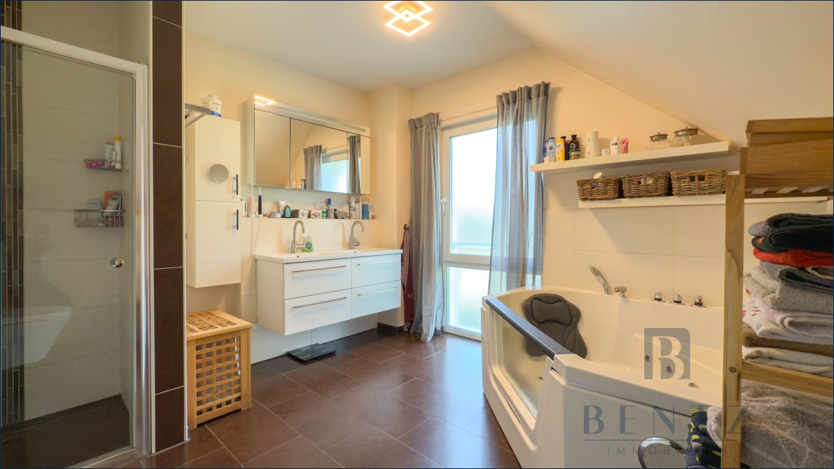 Das Einfamilienhaus ist dank seines jungen Baujahrs 2013 und hochwertigen Bau in einem neuwertigen Zustand und lässt keine Wünsche offen. Fußbodenheizung im gesamten Haus, zentrale Lüftungsanlage, Erdwärmepumpe, Photovoltaikanlage und 13 kW Speicher der Marke E3DC, moderne Ausstattung und vieles mehr! Besonders hervorzuheben sind die dadurch niedrigen Nebenkosten und die hohe Autarkie. Auf 143 m² Wohnfläche verteilen sich fünf geräumige Zimmer und zwei Bäder. Ein Highlight ist hierbei der lichtdurchflutete Wohn- und Essbereich mit einem herrlichen Blick in den großflächigen Garten und direktem Zugang zur Terrasse. Im Erdgeschoss befinden sich zusätzlich ein Badezimmer mit Dusche, ein Büro sowie neben der Küche ein Hauswirtschaftsraum. Im Dachgeschoss sind zwei Kinderzimmer und ein Elternschlafzimmer mit Ankleide. Das Hauptbad mit Whirpool-Badewanne und ebenerdiger Dusche ist von guter Größe. Abgerundet wird Ihr Traumhaus mit einem Doppelcarport inklusive Wallbox und einer Garage mit elektrischem Tor. Die hochwertige Küche und die Photovoltaikanlage (Bj. 2021) sind im Kaufpreis enthalten!