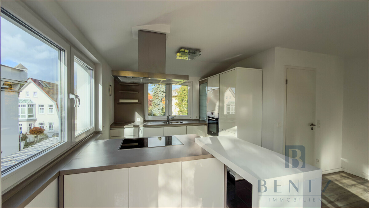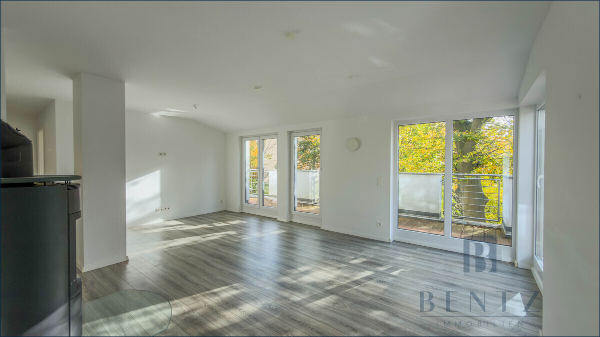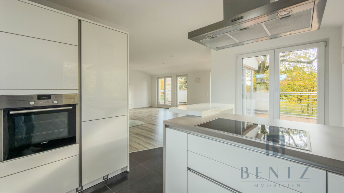 Sie wünschen morgens und abends Sonne mit Blick ins Grüne? Diese Penthouse-Wohnung verfügt über zwei große Terrasse im Osten und Westen als durchgehende TerrasseIm Staffelgeschoss gelegen verfügt diese lichtdurchflutete Penthouse-Wohnung über etwa 103 m² Wohnfläche: Aufgeteilt in ein Schlafzimmer, ein Büro mit Zugang auf die Ost-Terrasse, ein Tageslichtbad mit Badewanne und Dusche, ein Gäste-WC, ein Abstellraum für Ihre Waschmaschine und Trockner, sowie dem großen und lichtdurchfluteten Wohn-Essbereich. Die offene Küche, inkl. Einbauküche, integriert sich optimal in den offenen Bereich und bietet einen Zugang zur West-Terrasse.